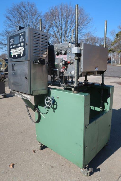 1 – Used Domino Ink Jet Printer/Coder. Mounted on “Bottomless” conveyor/gap transporter, machine is on casters for portability. With variable Speed control. (Stock # 8724B)
