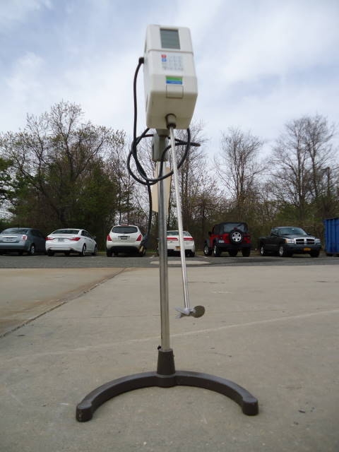 1-USED LIGHTNIN MODEL 2010 TABLETOP LABORATORY PROPELLER MIXER, S/N 100836. WITH DIGITAL CONTROLS, MIXER HAS APPROX. 24 IN. LONG STAINLESS STEEL SHAFT WITH APPROX. 2-3/4 IN. DIAMETER PROPELLER. DRIVEN BY 1/10 HP SINGLE PHASE, 110 VOLT MOTOR. (STOCK #7777Z)