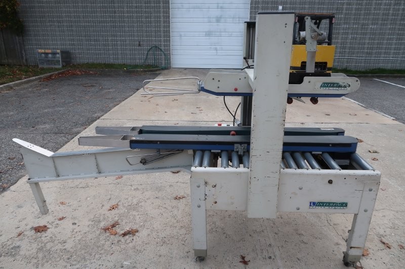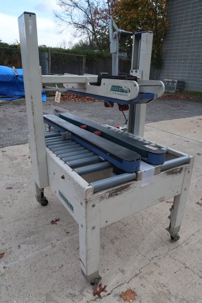 1-Used Interpack Model USA2024-BFF Top Only Case Taper/Sealer, Serial Number H03-M070-005. On casters for portability machine has motorized belts for moving cases through the unit. Electrical specifications single phase, 60 cycle, 115 Volt. (Stock #9016D)