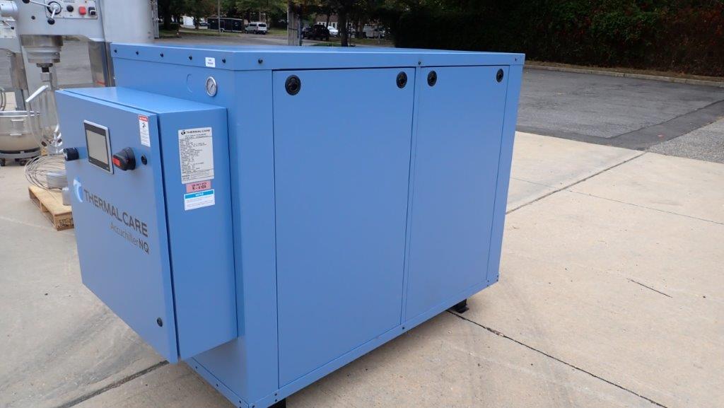 1-Used Thermal Care “Accuchiller NQ” Electric Chiller, Model NQR08, Serial Number 29115011809.  Utilizes 7.5 HP compressor, electrical specifications 3/60/460 Volt.  Suitable for R-410A refrigerant, machine has front mounted control panel and was last used in the pharmaceutical industry. (Stock #8904J)