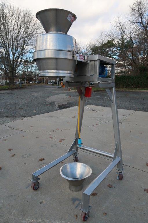 1-Used Urschel Model CC-D Shredder/Slicer/Strip Cutter, Serial Number 4051. Mounted on stainless steel stand, machine has top mounted stainless steel product hopper and casters for portability. Unit driven by 10 HP, 3/60/230-460 Volt motor. Equipped with stainless steel starter box, machine can handle a wide variety of products including cheese, coconut, cranberries, potatoes, other fruits/vegetables, cooked meats and pet food. Capable of many different types of shredding, slicing, cutting and grating, depending on type of cutting head used. (Stock #8442B)