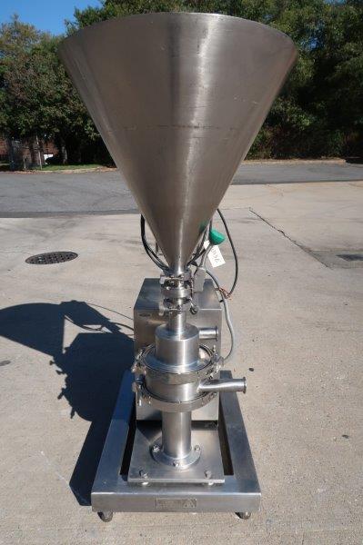 1- Used Quadro Ytron Model XC1-3A Stainless Steel Powder Disperser, Serial Number XC1-0012. On stainless steel base, disperser is driven by 7.5 HP, 3/60/230-460 Volt motor. Last used in the dairy industry machine is rated up to 70 gallons per minute liquid (depending on product viscosity) and up to 150 pounds per minute powder induction. Equipped with stainless steel starter box. (Stock #9013E)