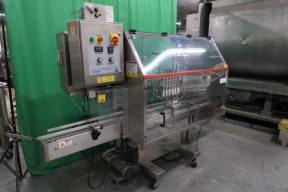 1-Used AB Techno Model RTCE670-A Complete Bottling Line.  This fully automated system is equipped with a six head filler, corker for both natural and silicone corks, foiler and pressure sensitive labeler.  Last used bottling 500mL Port as well as 750mL Bordeau and Burgandy wines.  Taken out of production at the end of February, 2016 due to purchase of a larger line.  (Stock # L1218)