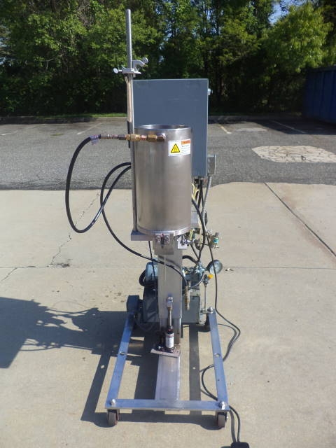 1-Used Hercules Model MC-1 Air Operated Single Piston Filler, S/N 75-MC1-111. This filler has self-contained heating capability for filling of products that require hot filling. With stainless steel jacketed hopper, filler has Delta Power hydraulic power pack and jacketed filling area so that filled product remains heated during the entire filling process. Filler has foot switch for activating filling cycle and Fenwall control panel (Stock #8005S)