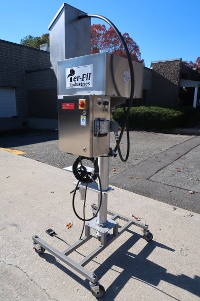 1-Used Per-Fil Industries Model “Micro-W” Single Head Auger Powder Filling Machine, S/N 40280. On casters for portability, filler was last used in the supplement industry. Equipped with Allen-Bradley side-mounted panel, filler has single phase, 60 cycle electrics. (Stock #9019R)