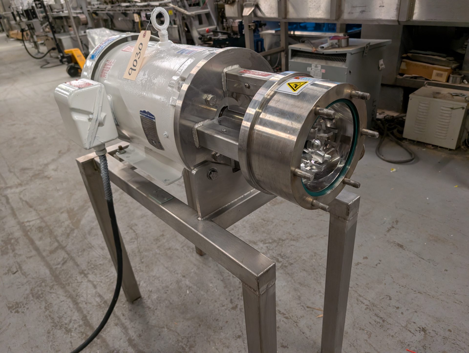 1-Used Silverson Model 312/450UHS Stainless Steel “Ultra Hygienic” Multi-Stage Inline High Shear Mixer, Machine number 312/450UHS1336. Driven by 20 HP, 3/60/230-460 Volt TEFC “Washdown” motor, machine was last used in the personal care products industry. Equipped with approximately 2 In. diameter tri-clamp inlet and outlet ports. mounted on stainless steel stand. (Stock #9030)