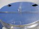 1-Used lee 200 gallon stainless steel jacketed hemispherical kettle, s/n 349r. Dimensions approx. 55″ diameter x 32″ deep, kettle has code stamped jacket and approx. 2″ diameter center bottom outlet with valve. On legs, kettle is equipped with two-piece hinged lid.