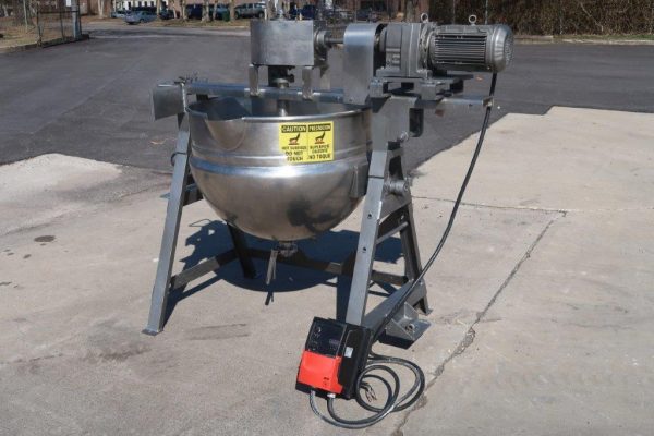 80 Gallon Lee 316 SS Double Motion Scraper Kettle, Tilt Discharge, 100 PSI Jacket