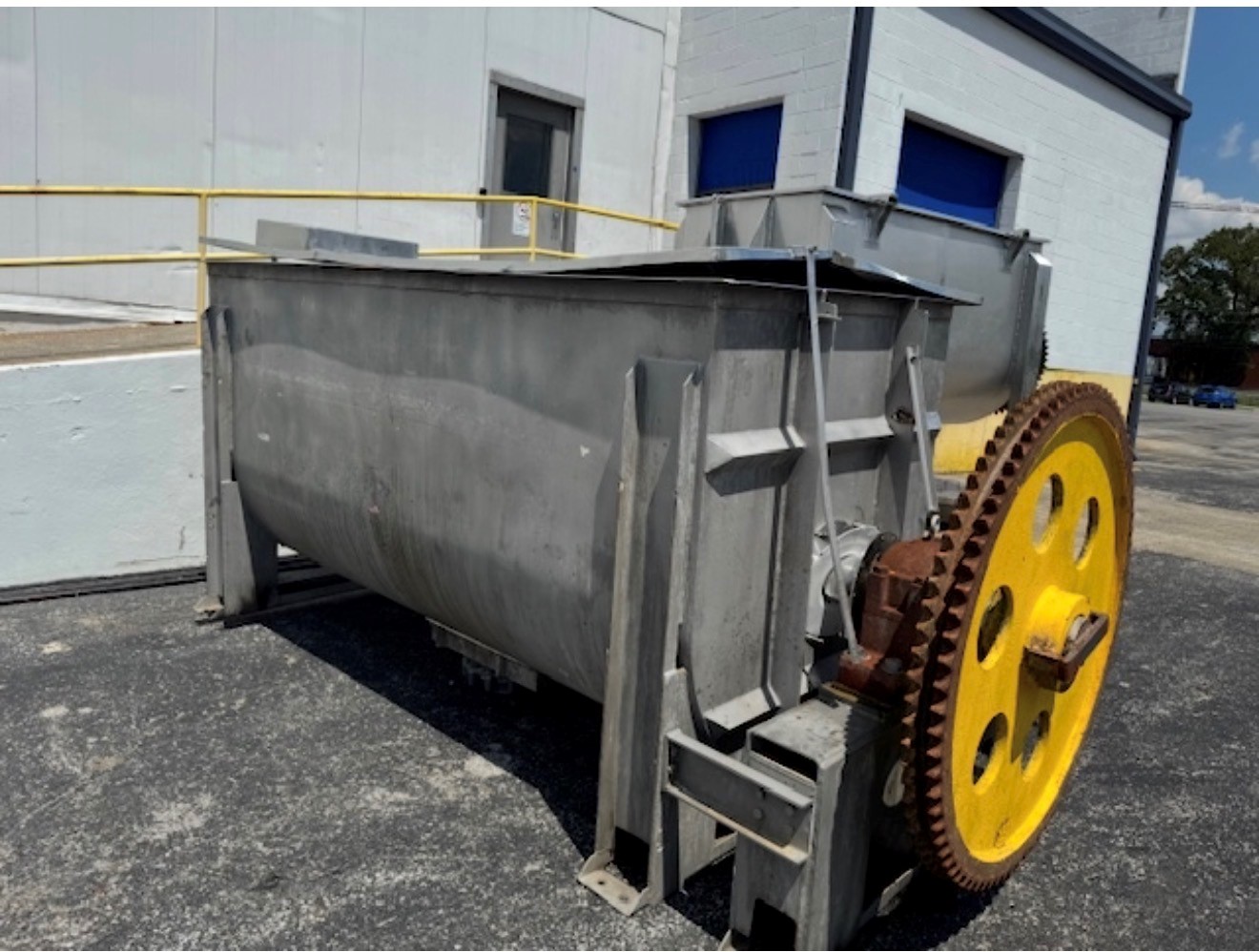 1-Used Day Approx. 125 Cu. Ft. Stainless Steel Double Ribbon Blender. With stainless steel lid, guard and center bottom discharge, blender is driven by 50 HP motor. (Stock #L2094)