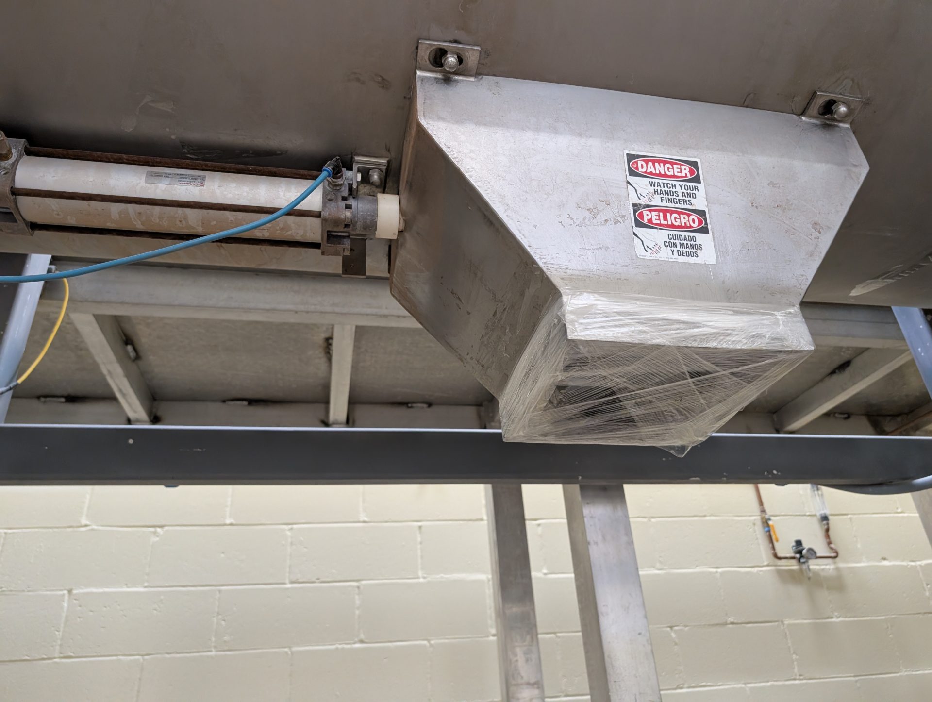 1-Used A.I.M. 100 Cubic Foot Stainless Steel Double Ribbon Blender. Last used in the supplement/vitamin industry, blender is driven by electric motor and has approximately 6 In. diameter center bottom discharge with automatic pneumatic valve. With stainless steel hinged lid, blender inside dimensions approximately 46 In. wide X 94 In. long X 51 In. deep. Blender is on legs and can be supplied with leg extensions, mezzanine and staircase, if required. With partial top safety grate blender has variable frequency control for variable speed operation. (Stock #L2009)