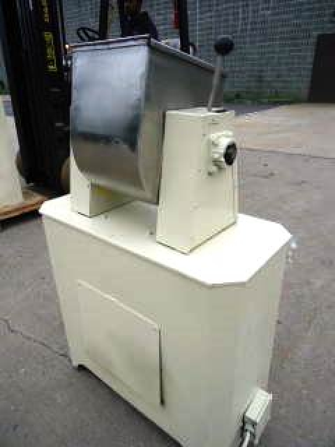 1-Used sun lab equipment stainless steel mixer, serial #672. Equipped with stainless steel tilt type mix tank, measuring approx. 10″ wide x 12″ long x 14″ deep. With stainless steel hinged lid, mixer operates on 3 phase 60 cycle electric current. (stock #6970b)