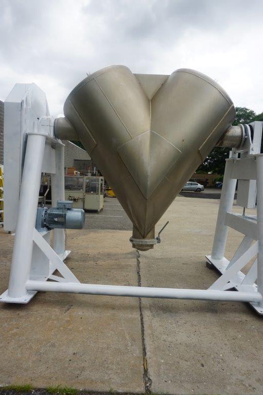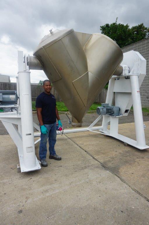 1- Used Patterson Kelley 60 Cu. Ft. Stainless Steel Twin Shell “V” Blender. Last used in the food industry, Blender is equipped with high speed intensifier bar. On stand, Blender has an approx. 12 In. diameter butterfly discharge valve. Equipped with 10 HP main drive motor, as well as a 30HP secondary motor for driving the high speed intensifier bar. ( Stock # 8534)
