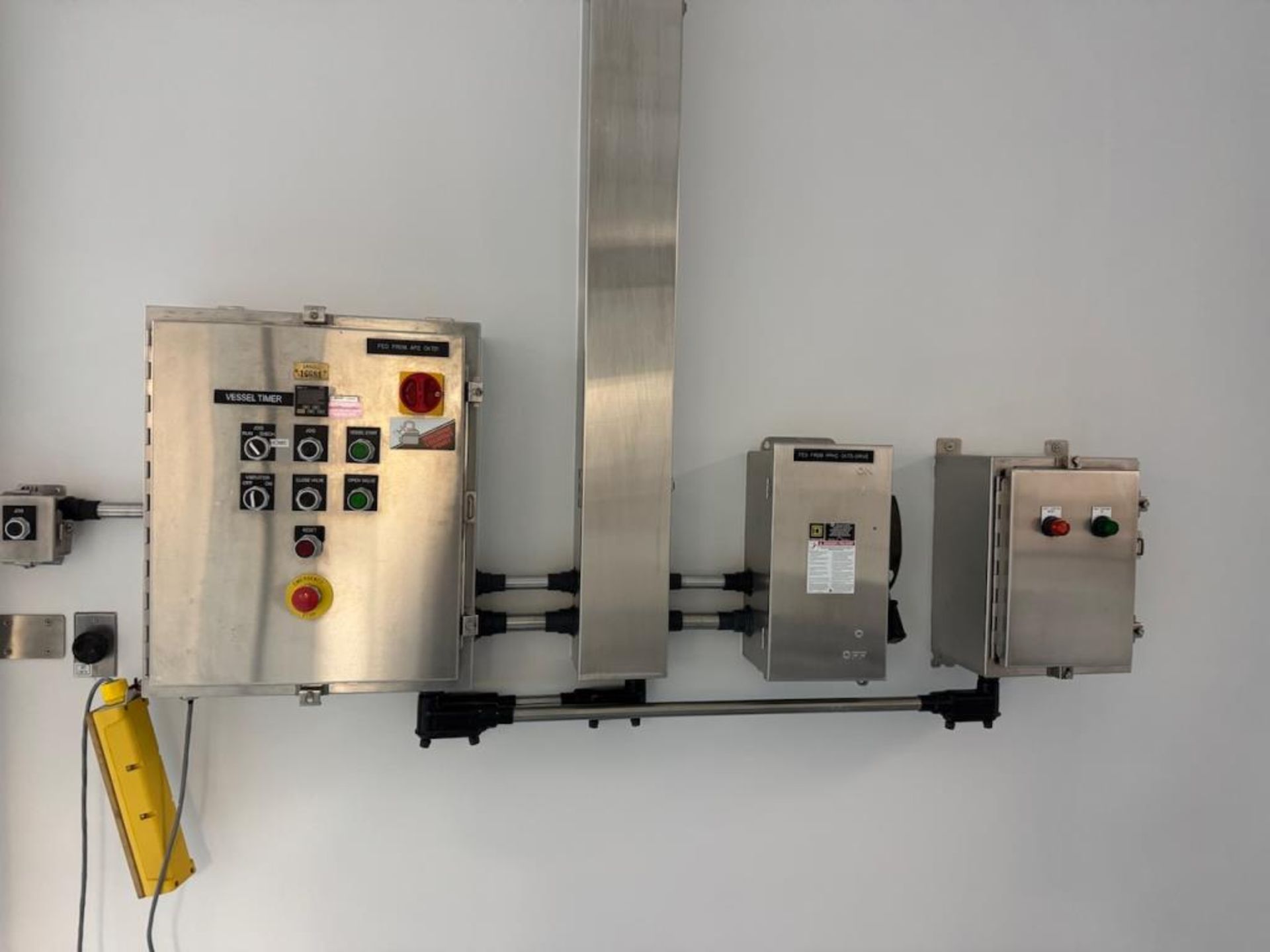1-Used Gemco 125 Cu. Ft. Stainless Steel Twin Shell Tumbling Blender. Last used in pharmaceutical industry, blender is on stand and is driven by 20 HP, 3/60/460 Volt electric motor and speed reducer. Further details are available upon request. (Stock #9017A)