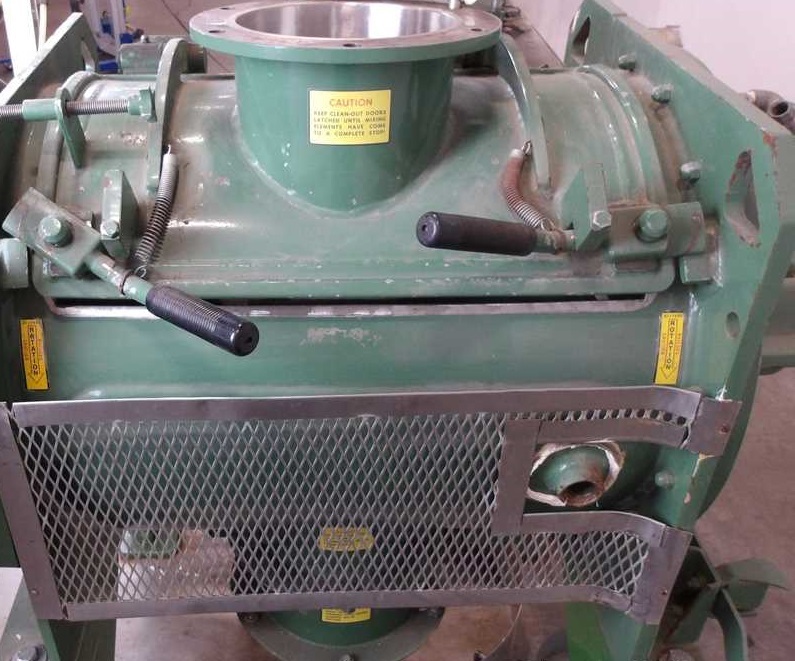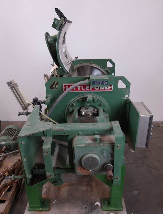 1-Used Littleford 4.6 Cu. Ft. Model FM-130-D Jacketed Plow Mixer. With sanitary interior with welded main drive shaft (solid one-piece construction), mixer has 4.75” x 6.5” rectangular discharge with manual lever. With main drive motor driven by 7.5HP, 3/60/460 Volt motor and chopper blade driven by separate 10HP, 3/60/460 Volt motor. Equipped with one standard tool chopper blade, mixer was previously used in a pharmaceutical processing plant. (Stock #L2037)
