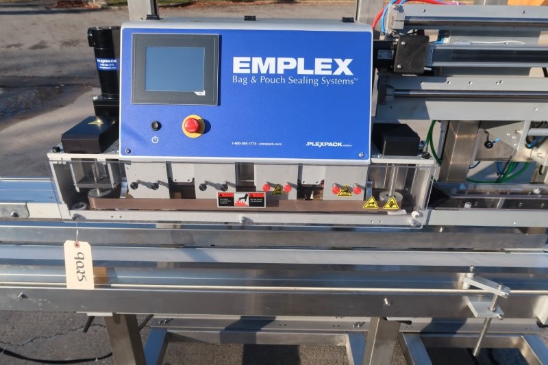 1-Used Plexpack “Emplex” Model MPS7503S Continuous Band Sealing Machine, Serial Number 036357. Last used in the pharmaceutical and research industry, this machine has stainless steel framework and can hermetically seal bags and pouches at speeds up to approximately 1,000 inches per minute. Suitable for variations in bag material, machine has PLC “touch screen” controller. With 94 In. long stainless steel motorized conveyor with approximately 6.5 In. wide conveyor belt. With adjustable height feature, this bag sealer is on casters for portability and has single phase, 60 cycle electrics. (Stock #9025)