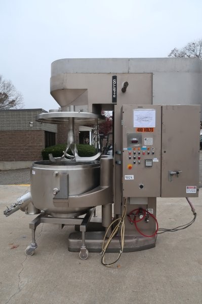 1-Used Collette Gral 600 Stainless Steel High Shear Mixer Granulator. With top-driven impeller and high-speed chopper to create a dense, uniform granulate. Machine has a variety of uses including dry mixing of powders, wet mixing, granulation, homogenization, and de-lumping. Equipped with a hydraulic bowl lift for ease of loading and discharging and has a jacketed bowl with pneumatic valve at bottom for an easy and controlled discharge. All contact parts are 316L stainless steel. With 50HP 3/60/460 Volt main drive, machine was last used at a large pharmaceutical company. (Stock #9024)