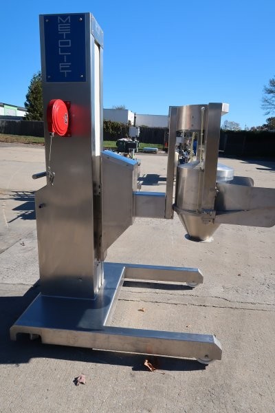 1-Used Meto Systems Model M2611-10 Stainless Steel Column Bowl Lift, Serial Number 6827. On casters for portability, machine has 150 KG capacity. Last used in conjunction with a fluid bed dryer at a nutritional/supplement manufacturer. (Stock #9019W)
