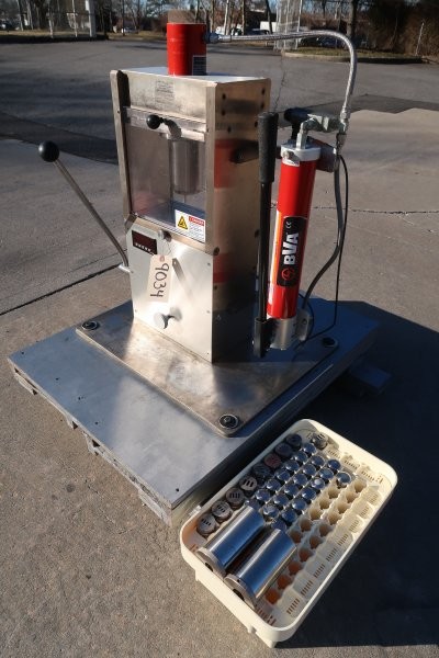 1-Used Natoli Model RD-10A Benchtop Single Punch Tablet Press. Machine comes equipped with an assortment of tooling, this analytical tablet press is also a great tool to offer training to R & D Labs as well as universities. (Stock #9034)