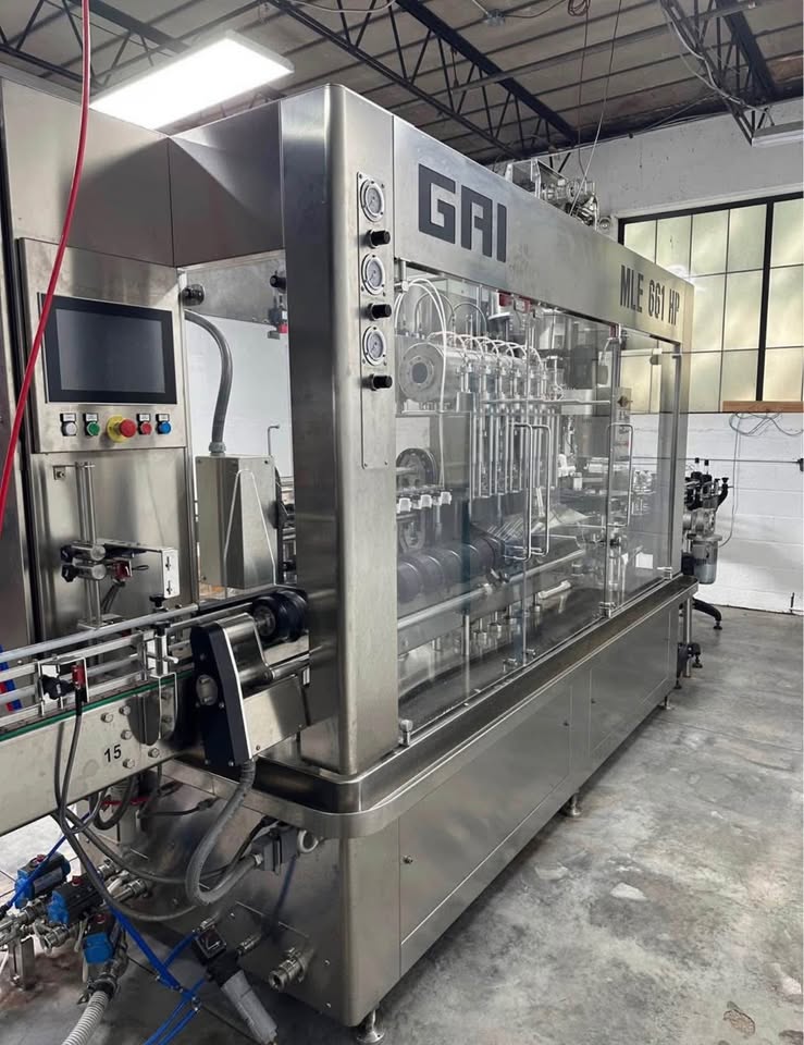 1-GAI/Prospero Model GAIM-MLE 661 HP Automatic Monoblock Bottling Line.  With Gangloff Scoma Unpacking Machine (300 Bottles per Hour), Loading/Unloading Station and Dubuit X-FL Double Production Automatic Screen-Printing Machine for Cylindrical Bottles.  (Stock #L2036)